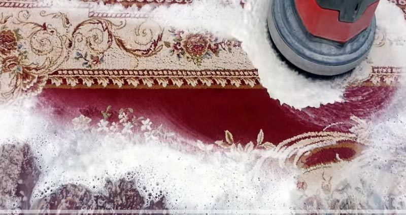 - Bước 5 : Chà toàn bộ bề mặt thảm bằng máy chả chuyên dụng
