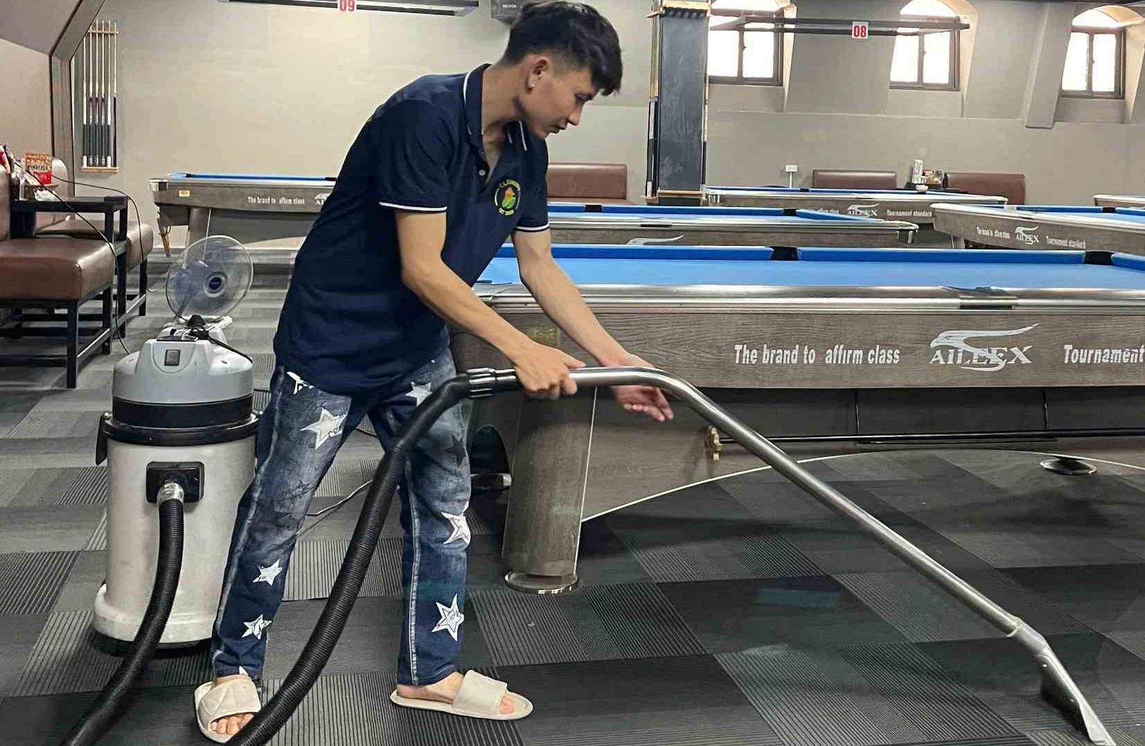 - Bước 2 : Dùng máy hút công suất lớn hút bụi toàn bộ bề mặt thảm, thu gom những rác lớn.